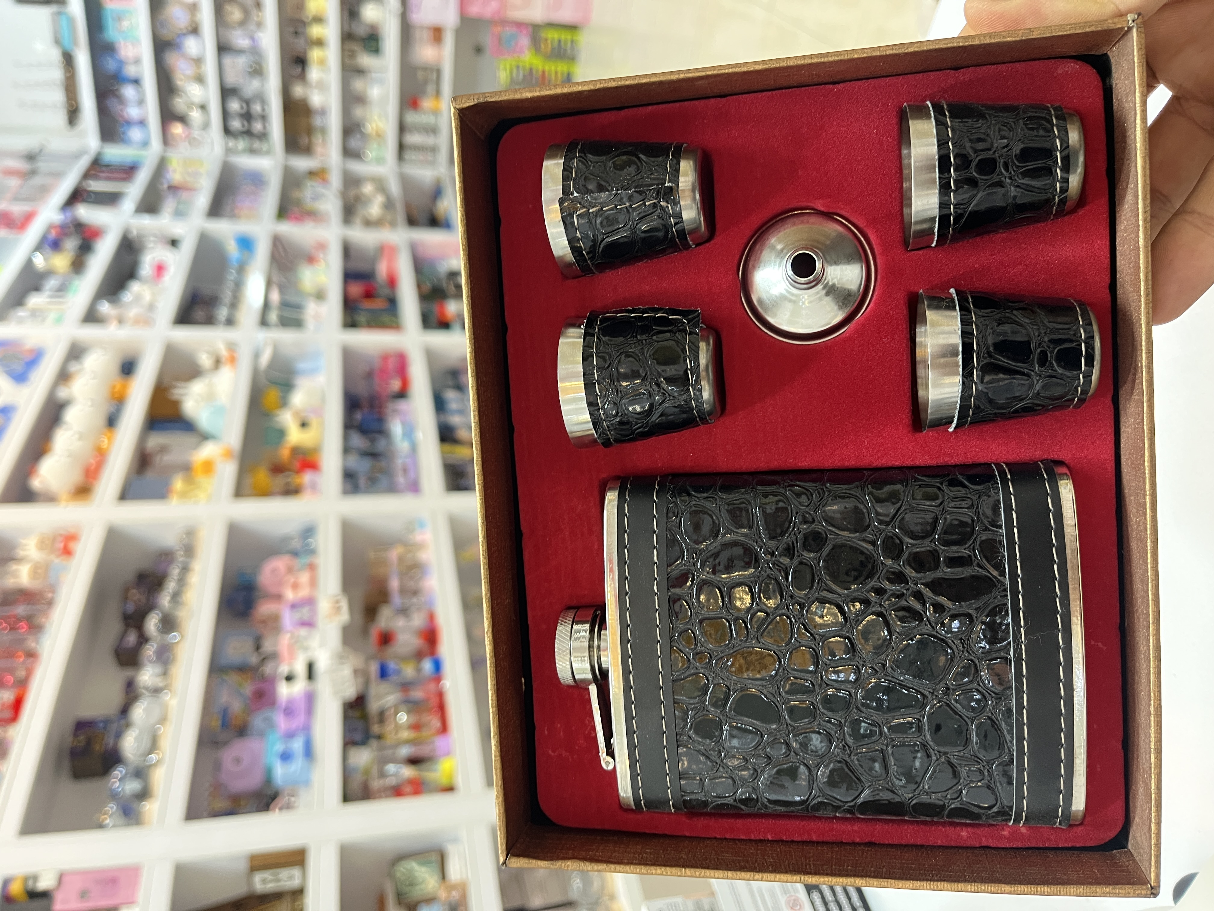 ناموجودست قمقه جیبی به همراه شات فندک و چاقو وشطرنج چوبی