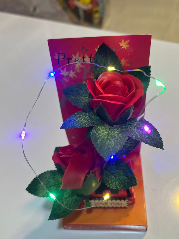 گل رز چراغ دارباطری خور (قابل تعویض)