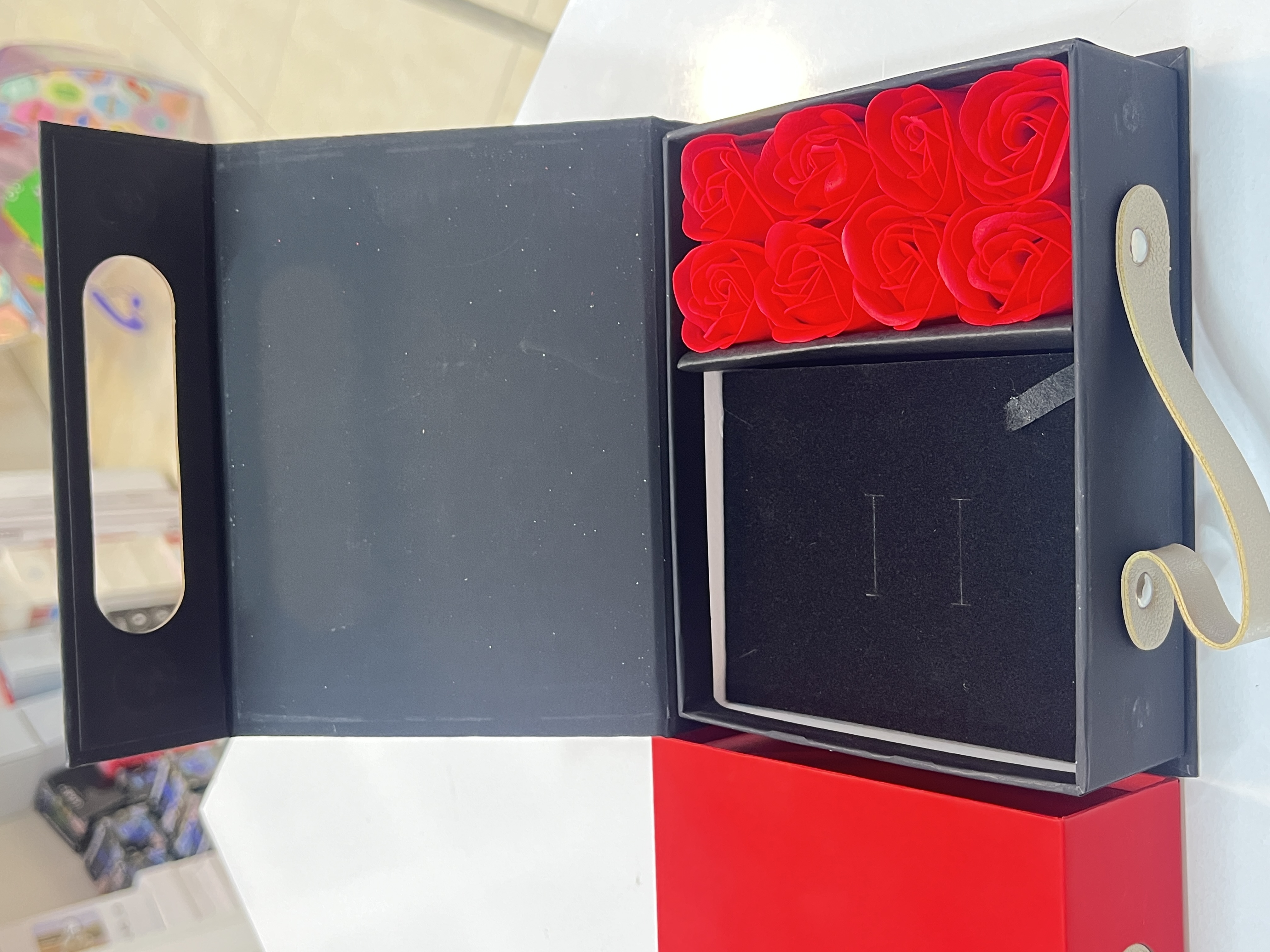 باکس هدیه گل رز و جواهرات دسته دار